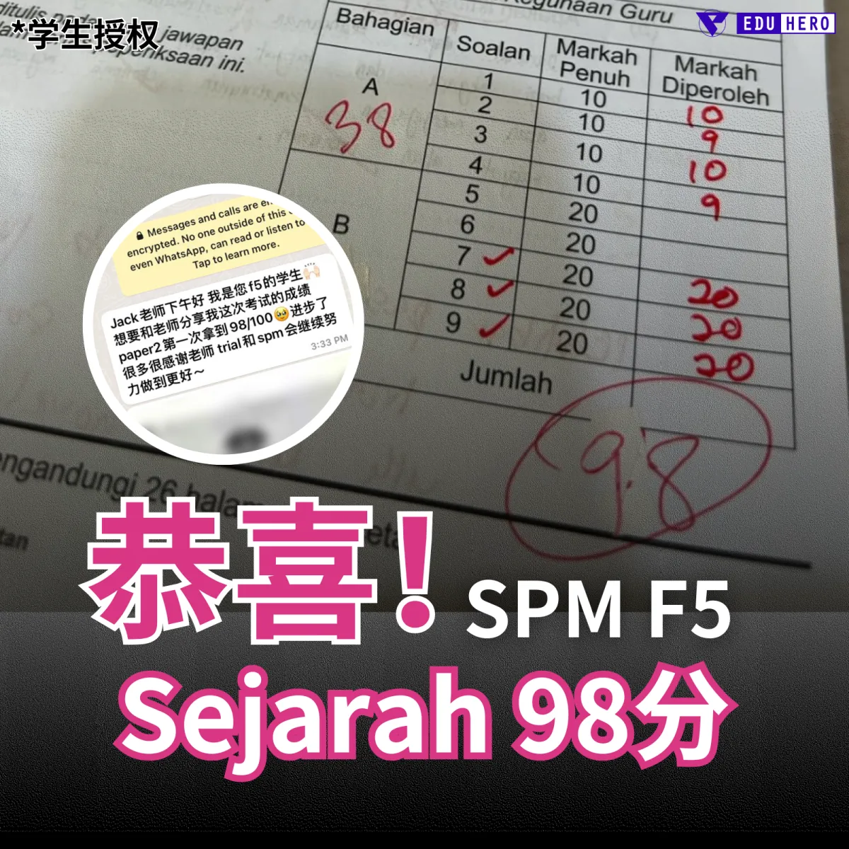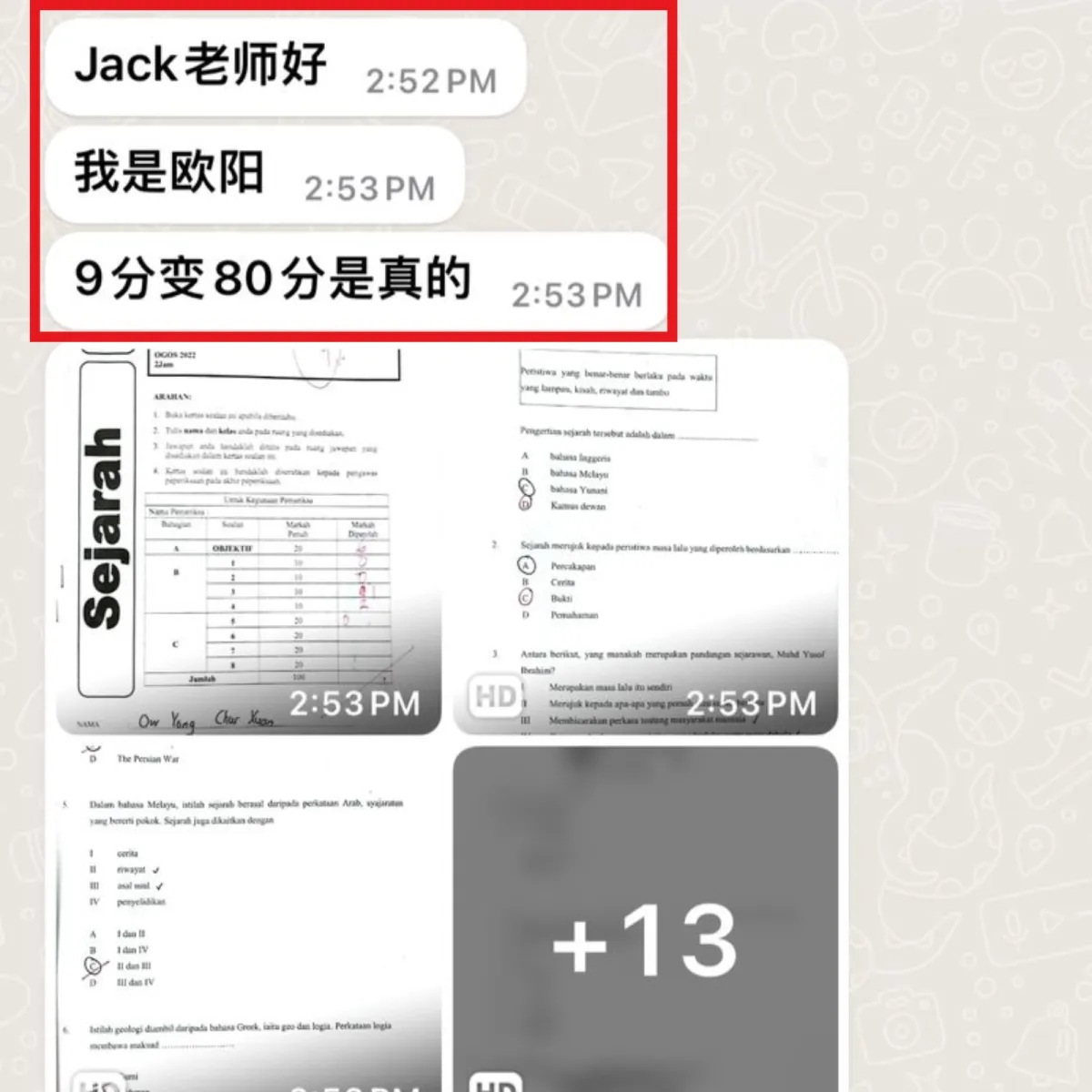 SEJARAH 从不及格变成 A。