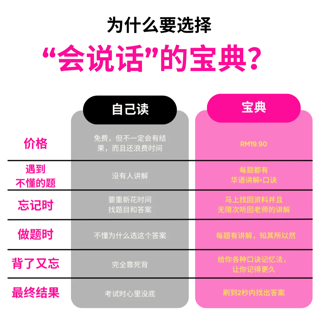 老师用华语逐题讲解,附上口诀和记忆法,让你真正理解,不只是死背。